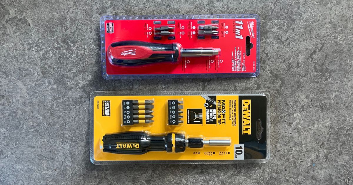 Note: In the above picture, the Milwaukee screwdriver is packaged using PVC, while the DeWALT screwdriver is not.